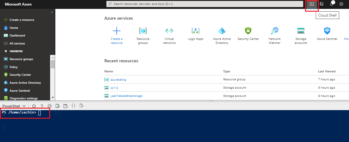Click on cloud shell icon appears next to global search as depicted in image below: